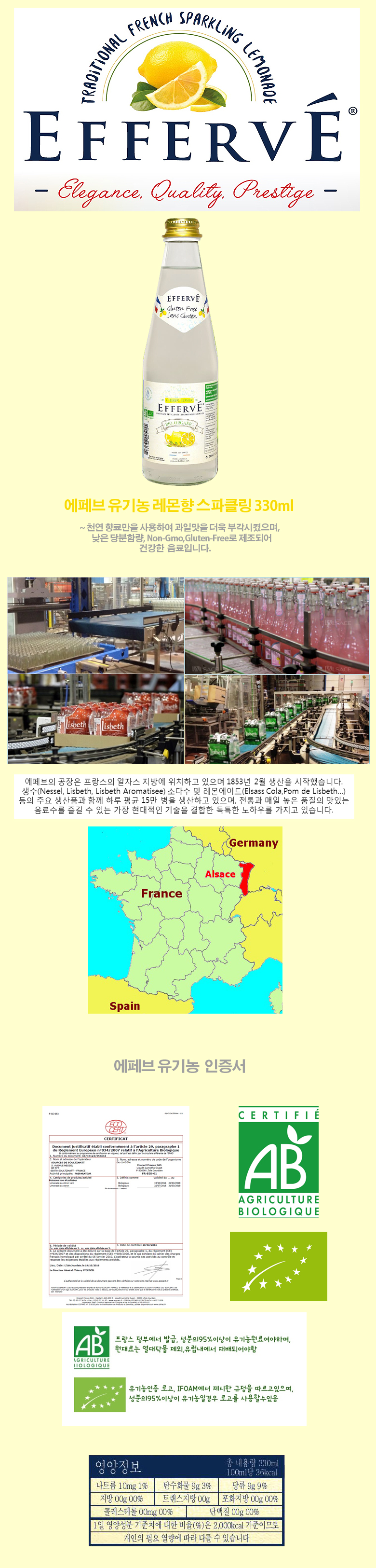 에페브 유기농 레몬향 스파클링은 천연 향료만을 사용하여 과일맛을 더욱 부각시켰으며, 낮은 당분함량, Non-Gmo, Gluten-Free로 제조되어 건강한 음료 입니다.