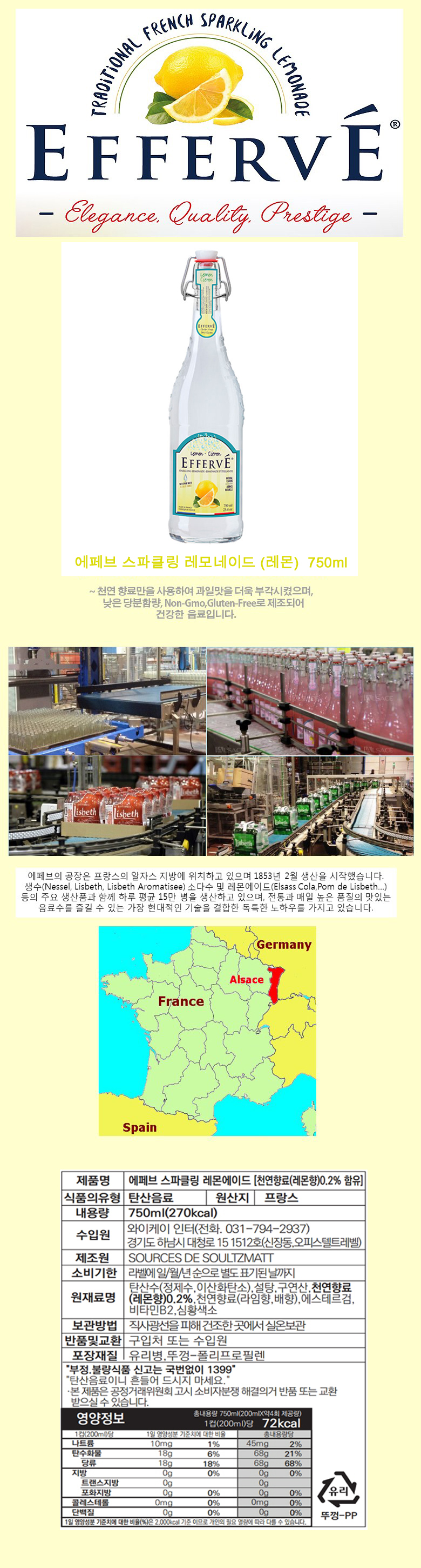 에페브 스파클링 레몬에이드(레몬) 750ml 1개