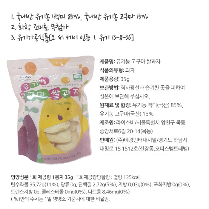 라띠아 유기농 고구마쌀과자